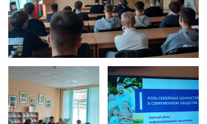 17 октября с учащимися группы РМ-25 прошел единый день информирования: «Роль семейных ценностей в современном мире» с участием первого секретаря БРСМ, Артёмом Жовнериком.