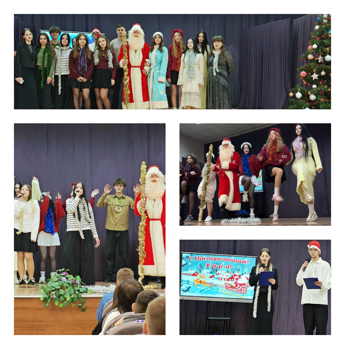 В преддверии наступающего Нового 2026 года, прошло Новогоднее поздравление: «В дни последнего декабря». Веселая музыка, хорошее настроение, поздравления от Деда Мороза и Снегурочки дали всем присутствующим в зале колледжа заряд бодрости и энергии на целый год.
