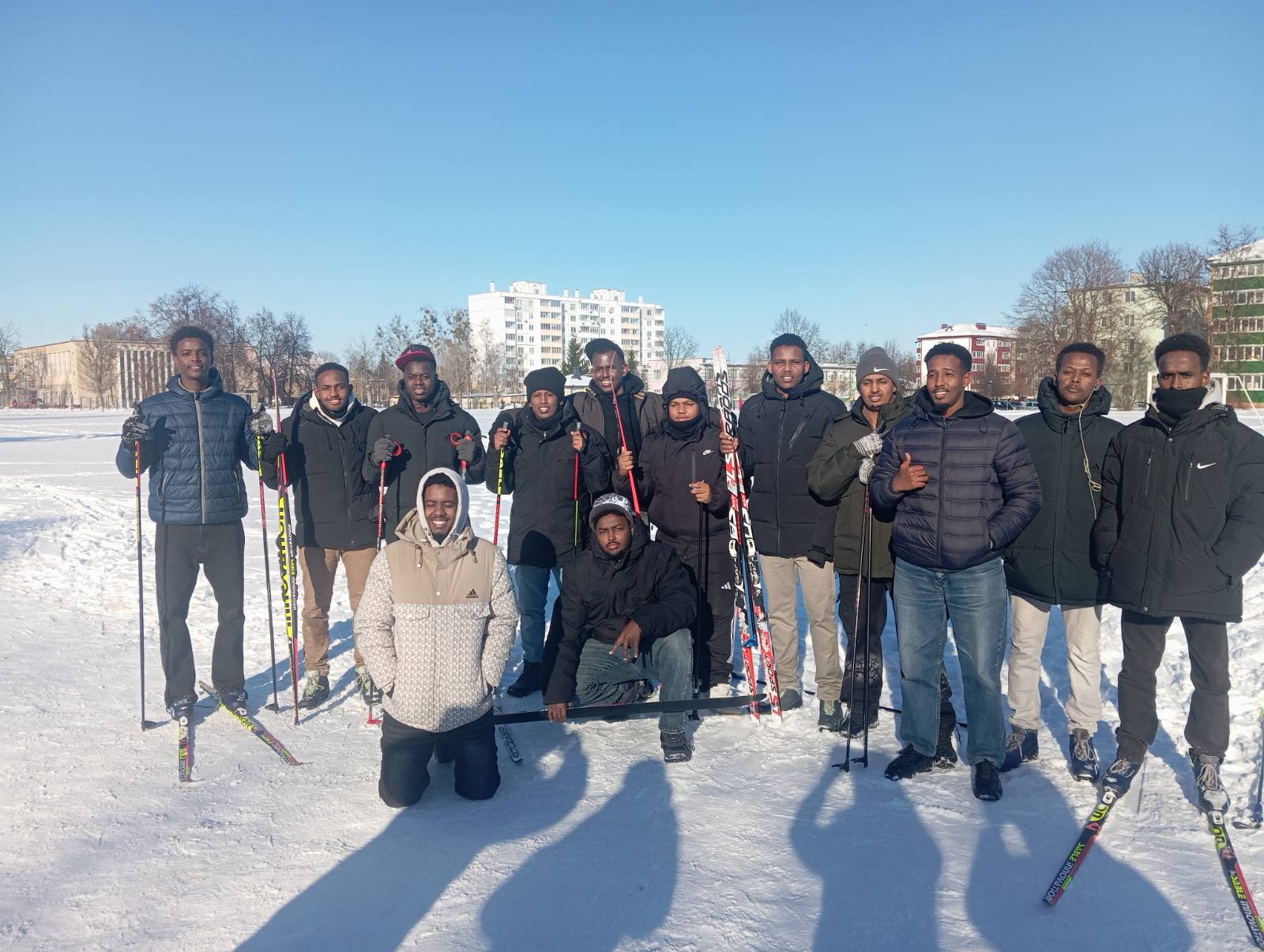 10 февраля 2026 года преподаватели физического воспитания ГУО «Солигорский горно-химический колледж» провели мастер-класс для иностранных слушателей по обучению технике ходьбы на лыжах. Африканские ребята получили незабываемые эмоции, зарядились энергией белоруской зимы. Некоторые ребята признались, что очень давно мечтали увидеть снег и научиться этому виду спорта.