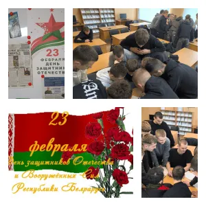 23февраля в читальном зале библиотеки колледжа в группе ПЛЧС- 25 прошло мероприятие в форме интеллектуальной игры - викторины «На защите родных рубежей», посвященная Дню защитника Отечества и Вооруженных сил Республики Беларусь. Во время игры учащиеся проявили заинтересованность, активно работали и справились со всеми заданиями.